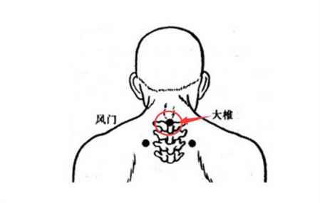 取穴方法:取定穴位时正坐低头,该穴位于人体的颈部下端,第七颈椎棘突下凹陷处。若突起骨不太明显,让患者活动颈部,不动的骨节为第一胸椎,约与肩平齐。