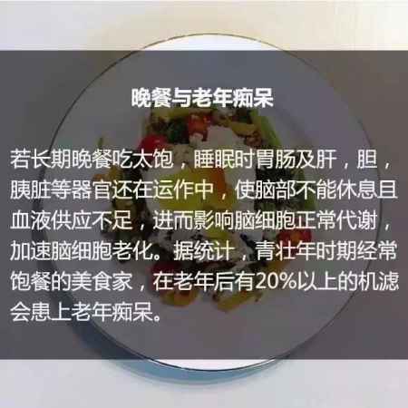 晚餐与健康 晚餐与多种疾病的关系介绍 01-02 阅读(458) 晚餐减肥晚餐 今天我特意介绍的是吃晚餐的重要性,如果不吃好晚餐可能会导致各种疾病的发生,下面抓紧时间来看看吧。 7、晚餐与急性胰腺炎 8、晚餐与老年痴呆9、晚餐与睡眠质量全世界最健康的晚餐食谱! 加蔬菜 很少有人早餐吃蔬菜,中午也常常只能吃快餐或外卖,蔬菜都很少。如果晚餐再不吃,那肯定是没法满足每天 500 克蔬菜的健康目标啦。上一页下一页 了解更多时尚资讯立即关注 查看全文