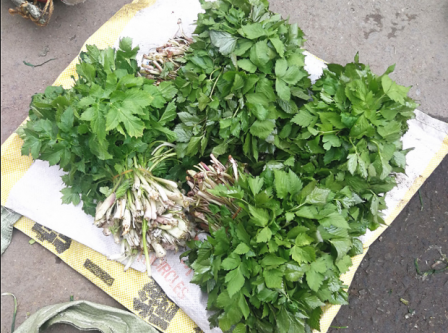 水芹菜与真正的芹菜不同。真正的芹菜是须根,而水芹菜却是茎根,在沟底的淤泥里拉拉扯扯地会生长得很旺盛,个子高高的,长得茂密的地方甚至让人分辨不出下面究竟是水沟还是平地。