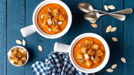 取南瓜半块、薏米50克、燕麦50克,将所有材料洗净,放入电饭锅中,煮到薏米爆开即可。这个量,煮出来大概是5人份,宜家的小碗,每份约150g左右。