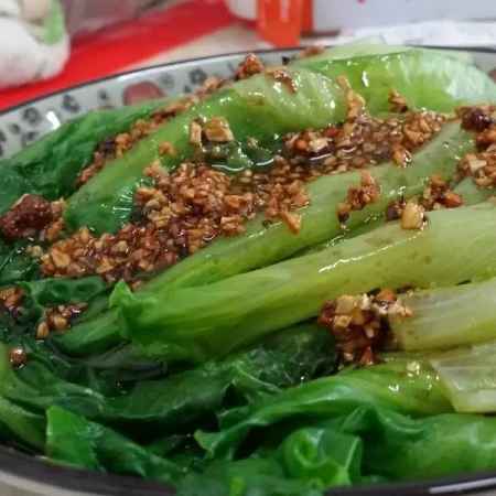 用料: 生菜 1颗、蒜 3瓣、酱油 10ml左右、蚝油 1茶匙、砂糖 适量、油 少许
