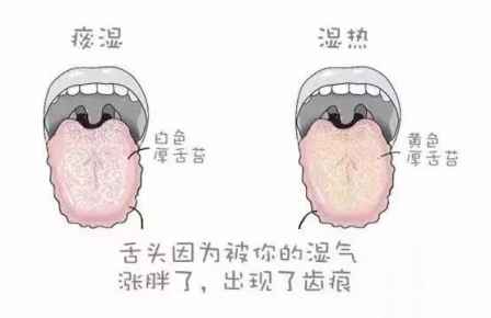 如果舌苔粗糙或很厚、发黄发腻,则说明体内有湿热;