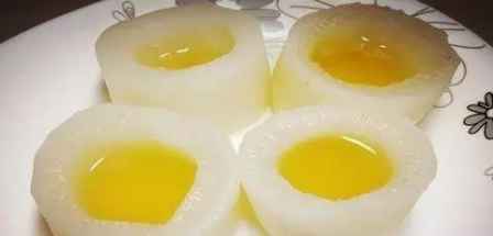 制作:将梨去皮剖开,去核,把贝母末及白糖填入,合起放在碗内蒸熟.早晚分食.