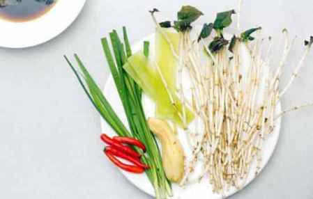 (2)先将鱼腥草去掉根须,掰成寸段。泡入盐水中5分钟,清洗干净。