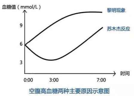 空腹血糖高,其实分为两种情况,第一种“黎明现象”,第二种“苏木杰反应”,要先弄明白自己血糖升高的原因,才能够对症治疗。