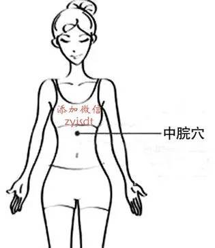 3、中脘穴:位于腹部正中线,脐上4寸处,相当于五指宽度。如下图: