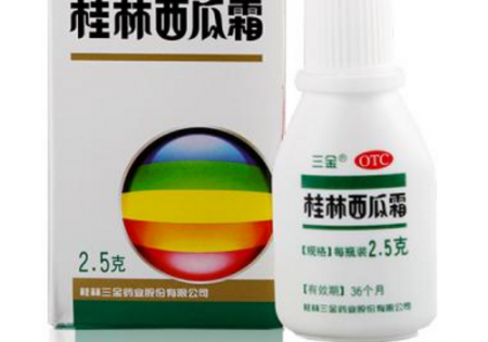 桂林西瓜霜有清热解毒,消肿止痛。用于风热上攻、脾胃热盛所致的乳蛾、喉痹、口糜,症见咽喉肿痛、喉核肿大、口舌生疮、牙龈肿痛或出血的功效。