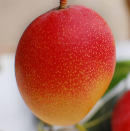 海顿芒这是红芒类,也就是这个芒果的果皮是红色的。这品种的芒果的原产地是美国,进入我们国家过后,**,广州,广西都是有种植的。成熟过后的海顿芒底色是深**的,果蒂周围是鲜红色的,果皮是非常的光滑,有白色的小点,果肉是橙**的,吃起来果肉比较细腻,汁液也多,纤维比较少。果香味也比较浓,在果蒂的地方还有松木的味道,在品质上是属于中上层,平均果重为250克。