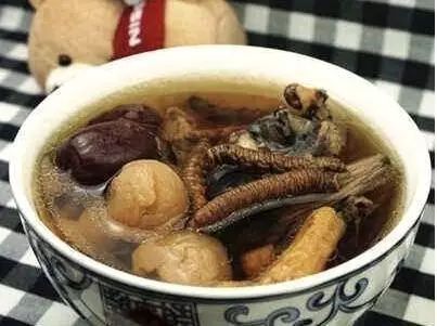 2、虫草铁皮枫斗汤:生哈蚧一对, 冬虫夏草5条,铁皮枫斗5克,瘦猪肉200克,陈皮一角。