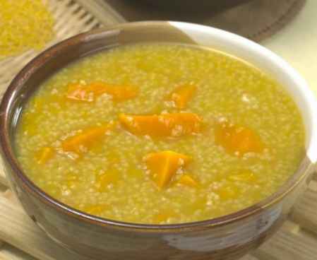 主料:大米、小米、南瓜、水、炒熟的黑芝麻。(大米和小米的比例约为2:1)