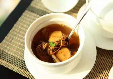 7.当煲了1小时后,再次把火开大,此时可以非常方便地把绿豆皮捞出丢弃不要,跟着继续煲1小时。