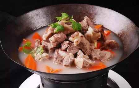3.将煨羊肉的汤倒入红萝卜中,将胡萝卜煮至八成熟。