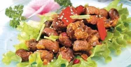 先将羊肾去掉外皮,片开成两半洗净,切成薄片。香菜洗净切成小段,葱切丝,蒜捣碎。把盐、味精、醋、料酒、葱、姜、蒜、香菜一起用开水对成汁。然后将事先切好的羊肾用水焯后控净水分;将油倒入锅中,烧至八成熟时,再将羊肾倒入,热油炸透后用漏勺捞出,倒入事先对好的汁中,急速调拌均匀淋入香油即可。