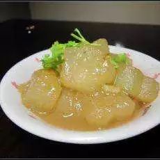 5. 加入冬瓜、酱油、清汤,用小火烧至冬瓜软烂;