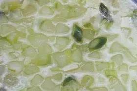 3. 将芦笋、冬瓜、精盐、姜丝一起放入锅中,加水适量,煨炖30分钟,再放入味精、湿淀粉勾芡即成。
