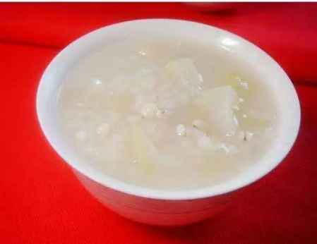 材料:冬瓜150克、稻米100克、白果(干)25克