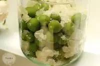 3、放入洁净干燥的密封玻璃容器,放一层青梅,洒一层冰糖;