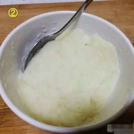 、土豆清洗干净,去皮后煮熟,压成土豆泥,装好备用。