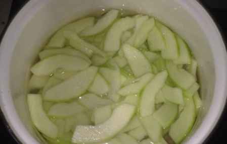 2、锅里烧开水加油、盐,将西葫芦焯水。