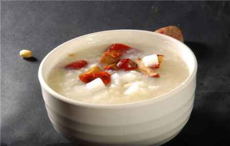 做法:皮蛋2个,水发腐竹60克,咸瘦猪肉100克,大米(或小米)适量煲粥,连吃2-3天。