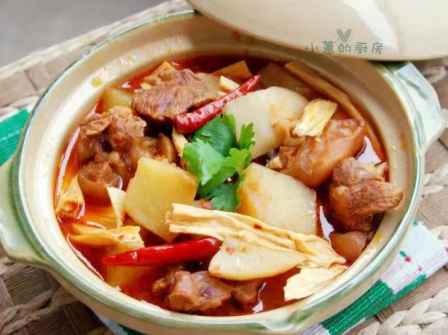 羊腿、白萝卜、土豆、腐竹、姜、蒜、八角、桂皮、干辣椒、郫县豆瓣酱、醋、黄酒、生抽、老抽、盐