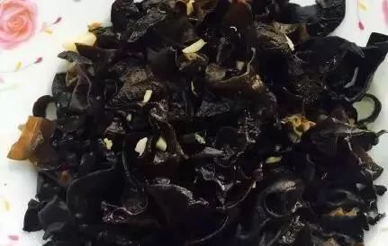 把干木耳用冷水泡发3至4个小时,再将泡发好的木耳去蒂洗干净后撕成小朵,放入沸水中煮一分钟左右捞出,放进冷水,再沥干。