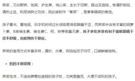 眼睛干涩吃荠菜