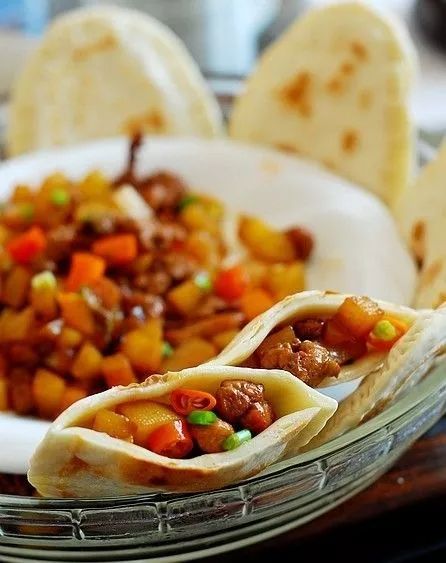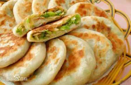 7.平底锅内放油,放入叠好的肉饼,盖上锅盖,小火将其煎至两面金黄中间熟透时即可.吃时再切成自己喜欢的大小。