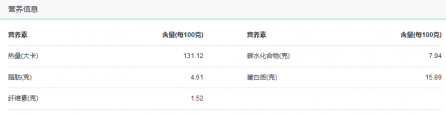 一般来算,一份100克煎牛排的总卡路里为131大卡,含脂肪4.61克,其他营养信息如下图所示,要注意的是,牛排的类别不同,如西冷、T骨、菲力等不同的牛排,因为肉质的取材部位不同,所含卡路里也是稍有区别的。