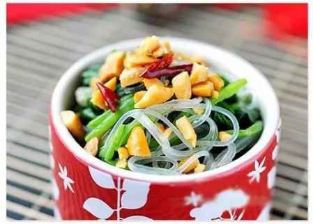 1、菠菜切去根部,清洗干净,切段;粉丝用凉水泡软;烧一大锅水,水开后放进菠菜,加入油、盐,水再次煮开即可捞起放进准备好的凉开水里