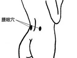 腰眼穴在腰部,当第4腰椎棘突下,旁开约3.5寸凹陷中。
