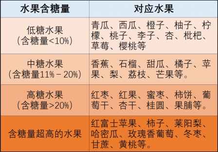 每种水果含有的糖分不同,对于血糖的影响也各不相同,我们将一些常见水果大致分为了4个等级: