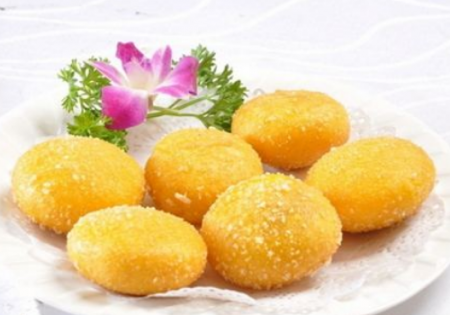 糯米:用糯米粉做出来的南瓜饼可以炸出酥脆的外壳,非常好吃,吃起来十分香脆。