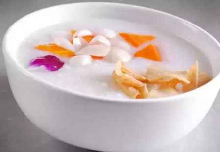 将百合用清水洗净泡软,粳米淘净,共入锅中,加水煮粥,待熟时加入冰糖稍煮即成。