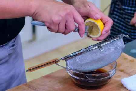 8、酱汁中加入半颗**汁。