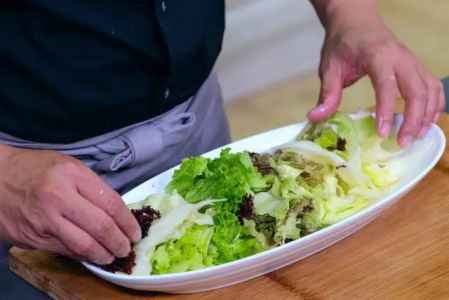 11、生菜排盘。将综合生菜放在盘中。