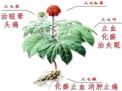原来这味中药就是三七,在古代医药学中一般被作为止血、化瘀、消肿、止痛的药材使用,而三七主要用于治疗全身的血瘀。