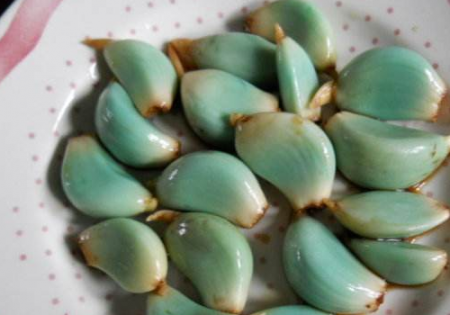一般来说,从腊八之后至正月十五,气温常在0℃以下。大蒜从奶白色变成翡翠绿,说明它所含的植物化学物质的结构发生了变化,这个变化取决于PH值、温度等。