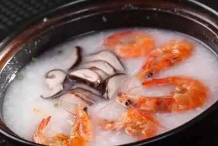 3.等粥熬好后,把火调大,把虾和香菇放进粥里,放盐,等虾变红时,倒一小茶匙香油,把葱花和香菜末放进粥里搅拌均匀即可。