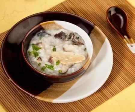 【材料】大米150克,鱼肉100克,鲜香菇4朵,芹菜50克,姜丝2克,盐、胡椒粉适量