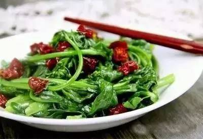 ⑤加入精盐,再用旺火炒至油菜熟透;