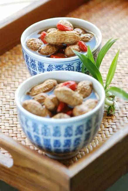 3、取密封容器,放入花生,倒入香糟汁,加入洗净的枸杞子,密封好,放入冰箱浸渍12小时以上(时间长一些更入味)即可取出食用。