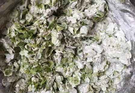 榆钱摘去蒂后和玉米面混合揉面,捏成小团,底部用手指旋出窝装,上过一蒸就是榆钱窝窝头,也是清香的饽饽味~
