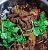 8、出锅前放入适量的鸡精提味,盛出时把事先准备好的香菜段放在羊蝎子上即可。