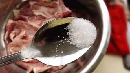 3 | 洗净大排,沥干水份,摊开摆入大盆之中,加入一小勺盐