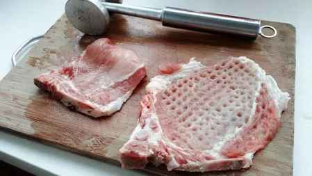 2 | 用松肉锤将大排正反面轻轻拍打成原来1.5倍大
