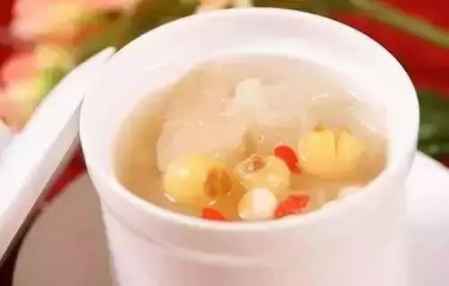 食材:银耳50g、桂圆50g、莲子15颗、冰糖适量。