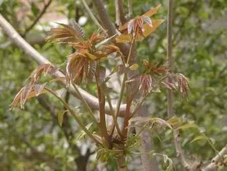 我家里买过两棵香椿树,种在花园里。刚种下的时候只有一人高。第二年春天,想采香椿芽的时候才发现,向阳的那一棵已经蹿到了四五米高,要采椿芽,还得搭着梯子上去。再过一年,它已经比两层楼还高了,而且枝干笔直,搭梯子也上不去了。用竹竿套铁丝去采芽吧,恐怕伤树,我们只能站在树下遥遥地观赏。去年秋天,我们终于听从了园艺工的建议,忍痛把主干给锯短了。不料,今年春天它旁生的侧枝照样猛长,很快又长到我望尘莫及的高度了。另外一棵种在背阴的地方,长得慢点。我们有了经验,时时修枝,让它总保持在一人多高的样子,这才年年吃上新鲜的香椿芽。