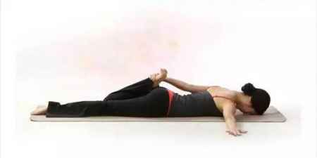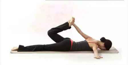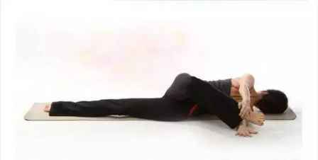 盆骨继续扭转,吸气的同时,左手握住左脚踝继续往背后拉伸,左脚尽量越来越靠近地板,两肩膀之间**也最大限度地拉伸缩小。调整自己的呼吸并维持姿势30秒。