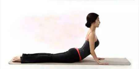 吸气的同时,手掌发力,手臂慢慢由曲折变伸直支撑上半身向上倾起,从腰部下方开始,脊椎挺直。